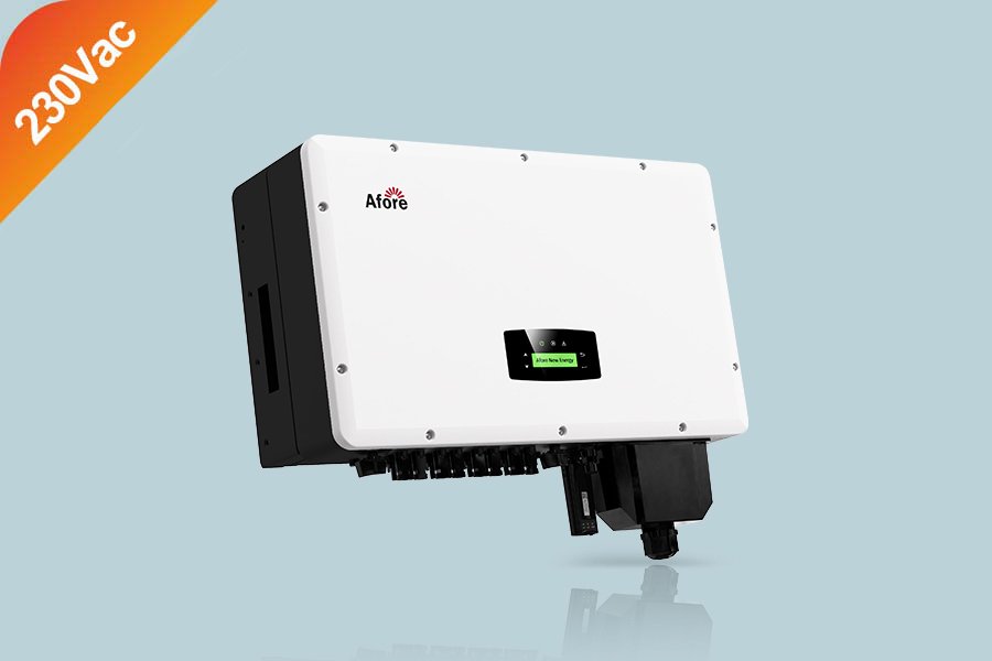 Afore BNT030KTL Trefase inverter for 230V IT nett. 4 MPPT, 2 utganger per MPPT. Innebygd overspenningsvern DC og DC bryter. IP grad 65.