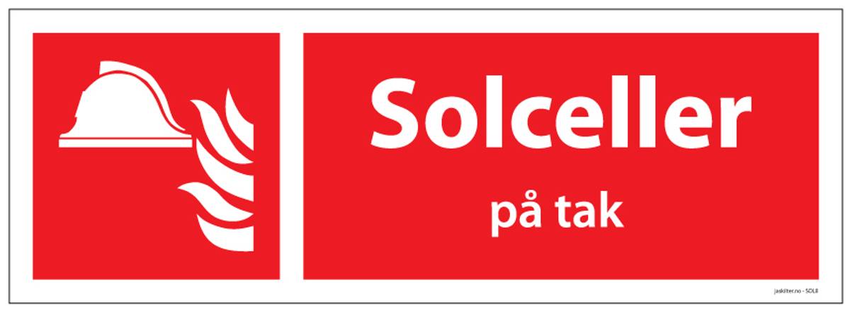 Skilt «Solceller på tak» 297×105 mm